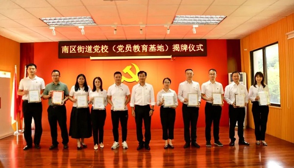 市委党校领导及街道领导班子成员一同为南区街道党校(党员教育基地)揭牌