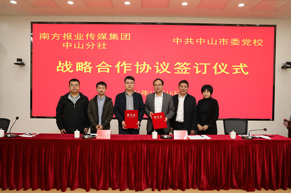 为深入贯彻全市“转作风、再出发、开新局”大调研大讨论活动,发挥好党校思想引领、理论宣传作用,12月16日上午,中共中山市委党校和南方报业传媒集团中山分社签署战略合作协议。根据协议,双方将本着优势互补、互利共赢的原则,进一步深化合作内容,扩大合作领域,尤其加强在理论宣传、智库建设、市情研究等方面的合作与交流。