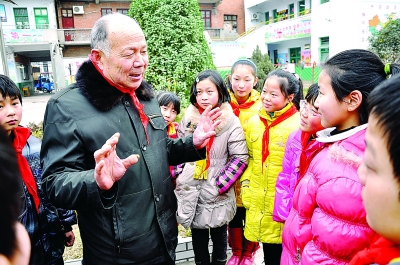 “编外雷锋团”团长宋清梅给邓州市城区第六小学的学生讲雷锋的故事