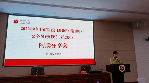 4月23日是第27个世界读书日。在这节日来临之际,为深入学习贯彻习近平总书记关于注重家庭家教家风建设论述,积极推动家庭家风家教建设,2022年中山市科级任职培训班(第1期)、公务员初任培训班(第2期)联合举办“弘扬好家风 书香伴成长”读书分享活动,全体学员参加活动。